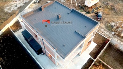 Система неэксплуатируемой крыши по железобетонному основанию с механическим креплением плит теплоизоляционных PIR и ПВХ мембраны.