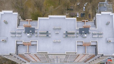 Sistem de acoperiș exploatabil cu spații verzi cu strat de hidroizolare din membrana polimer